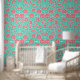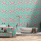 Un bonito diseño floral con flores rosas y detalles de línea intrincados rodeados de hojas verdes. Los colores vivos y el patrón de repetición crean un ambiente fresco y animado, perfecto para proyectos de primavera o verano.