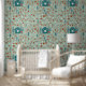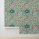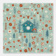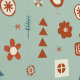 Un patrón boscoso inspirado por Scandi con criaturas del bosque y un reloj cuco sobre un fondo verde sabio. Arte original de Nic Squirrell.