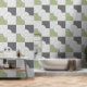 Añada un toque de modernidad a su espacio con nuestro fondo de pantalla geométrico, mostrando una mezcla de círculos, cuadrados y triángulos en tonos verde, gris y blanco mutado. Este diseño contemporáneo aporta un toque elegante y sutil a cualquier habitación, ideal para quienes buscan crear un ambiente único y acogedor. Perfecto para salas de estar, dormitorios o salas de juegos, este papel pintado es fácil de aplicar y de construir hasta el final.