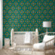 Papel de fondo negrita Boho geométrico de patrón verde. Crea una pared de acento cálido y terrenal con este patrón único, o embellece la parte posterior de un estante o la parte delantera de una credenza. Piensa en la caja para divertirte creando tu estilo de decoración de casa. Verde mostaza rosa.