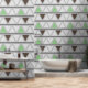 Este diseño de fondo de pantalla presenta un patrón de triángulos moderno y geométrico. Los triángulos están dispuestos en filas horizontales, alternando los tonos verdes, marrones y grises claros, creando un aspecto visualmente agradable y equilibrado. El fondo es de un gris claro y suave que se completa con los tonos suaves de los triángulos. El diseño geométrico repetitivo aporta una sensación de orden y sofisticación al espacio, lo que lo convierte en una excelente elección para una habitación contemporánea y de diseño. Este papel pintado es perfecto para habitaciones, salones o cualquier espacio que pueda beneficiarse de un toque de elegancia moderna.