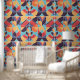 Papel Pintado Patrón geométrico del Naranja azul de Peel Stick A
