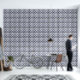 Trae un toque de elegancia global a tu espacio con este sorprendente patrón geométrico en tonos azules y blancos, inspirado en las tradicionales baldosas marroquíes y mediterráneas. El intrincado diseño de papel pintado muestra formas simétricas y detalles ornamentales, evocando la rica historia y artesanía artística de estas regiones. Tanto si se utiliza en la decoración de la casa, como en los suministros de fiesta o en los regalos personalizados, este estilo añade un encanto sofisticado y de estilo mundano. El diseño forma parte de una colección exclusiva, perfecta para todo aquel que desee infundir su hogar o sus eventos de belleza intemporal. Busque ID1078 para ver otros productos en este conjunto de diseño único. Nota: diseño adaptado del contenido generativo.