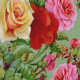 Este producto presenta un elegante patrón de rosas audaces en colores radiantes - rojo, amarillo, rosa y complementado con follaje verde.