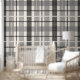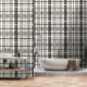 Papel Pintado Patrón negro gris Tartán Pastel moderno