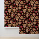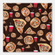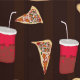 Pizza con salchichas y pepperoni y refrescos con paja en un patrón repetido.