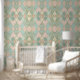 Papel Pintado Patrón rosa pálido, Verde azulado, crema y argla d