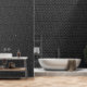 Un patrón de cuadrados blancos está en papel pintado negro.
