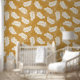 Papel Pintado Patrón sin foco con hojas doradas y blancas