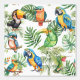 Un patrón tropical con aves, loros.