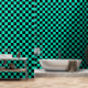 Papel Pintado Patrón verde azulado de cheques turquesa y negro
