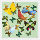 Papel Pintado Patrón verde de mariposas coloridas de palo