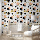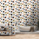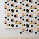 Este divertido fondo de pantalla muestra puntos de polka en melocotón, oro, negro y rayas. El acento perfecto que se añade a la decoración de tu casa.