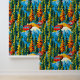 Campistas de RV rojas retro con colores de la naturaleza vintage azul, naranja, rojo y verde. Papel pintado de Guay y pelos para los que aman el camping.