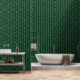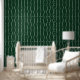 Decoración de paredes sobria y elegante donde el verde del bosque se une a una bonita hilera de perlas blancas creando un patrón fascinante. Las perlas blancas se caen delicadamente para añadir un toque de glamour y elegancia. El diseño minimalista con un toque retro le dará un toque de refinamiento a su casa con este bonito y sencillo patrón que llena la habitación de un bonito color verde profundo y de elegantes perlas.