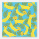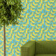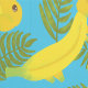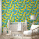 ¿Has visto alguna vez papel tapiz que sea más bananas? ¡Es un perro! ¡Es un plátano! ¡Son perros hechos de plátanos! Estos perros amarillos con forma de dachshund y fruto se acompañan de hojas de palma verdes con un fondo azul brillante y están dispuestos a traer un color alegre a las paredes.