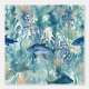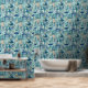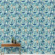 Los peces azules nadan entre hebras flotantes de hierbas marinas.