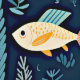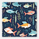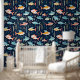 Papel Pintado Pescado azul y Naranja nadando en azul oscuro