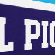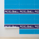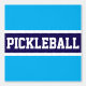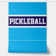 Este diseño deportivo presenta un texto atlético de PICKLEBALL dentro de una amplia franja naval horizontal con correas blancas en un fondo azul azulado. Los colores y el texto de este diseño se pueden personalizar.