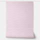 Wallpaper featuring a printed diagonal gingham check in soft pink and white. Peel and stick for easy install and clean removal. Apartment rental friendly for temporary updates, accent walls, seasonal refreshes, and quick makeovers. A classic cottage style wall treatment for kitchens, nurseries, and bedrooms. Suitable for permanent or temporary use.