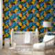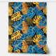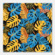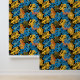 Papel Pintado Placas tropicales de verano doradas y azules brill