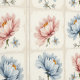 Flores rosa y azul pólvora dulces y de aspecto vintage se sostienen en cuadrados bordeados sobre un fondo blanco roto. Muy agradable, un poco rústico, los colores claros lo convierten en el lugar ideal para las habitaciones pequeñas.