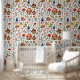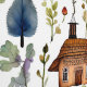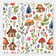 Cuidada y caprichosa casa de campo de acuarela núcleo pueblo, flores, setas y árboles. Añade algo de brillo a una habitación con este adorable papel de pared con la temática del núcleo de la cabaña.