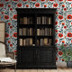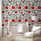 Papel Pintado Poppies rojos sobre la floral de fondo blanco