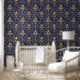 Este exquisito diseño Princescore presenta motivos adornados con damascos florales dorados, con un fondo azul índigo, que crea una sensación de lujo y elegancia real. Los detalles complejos, inspirados en la decoración barroca y aristocrática clásica, hacen de este diseño un lugar perfecto para el lujo del papel pintado, los tejidos de gama alta y la papelería sofisticada. Con su encanto refinado y su opulencia atemporal, este patrón aporta un aire de majestuosidad y grandeza a cualquier espacio.