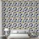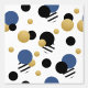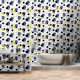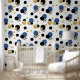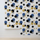 Este divertido fondo de pantalla muestra puntos de polka en índigo azul, dorado, negro y rayas. La combinación perfecta con la decoración de tu casa.