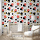 Este divertido fondo de pantalla muestra puntos de polka en naranja, oro, negro y rayas. El acento perfecto que se añade a la decoración de tu casa.