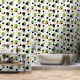 Este divertido fondo de pantalla muestra puntos de polka en verde, dorado, negro y rayas. El acento perfecto que se añade a la decoración de tu casa.