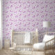 Looking for a dreamy, vibrant wallpaper for your child's room? This design features a soft purple background adorned with playful purple unicorns leaping amidst showers of shooting stars and golden glitter.
