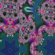 Esta imagen es una obra de arte fractal caleidoscópica vibrante, rebosante de patrones intrincados y diseños giratorios. En su centro, una forma de estrella azul profundo irradia hacia el exterior, rodeada de tendriles en espiral de vivos tonos rosados, violetas y naranjas. Los intrincados bucles y curvas crean una simetría hipnotizante, mientras que los toques de verde y verde azulado agregan profundidad y contraste. La obra de arte evoca un sentido de complejidad infinita y maravilla cósmica, combinando elementos de geometría y flujo orgánico en un diseño hipnótico y de otro mundo. Perfecto para quienes se sienten atraídos por la belleza del arte matemático y la expresión abstracta.