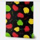 Papel tapizado con estampado de comida de pelos y palos con ungüento jamaiquino rojo, amarillo y verde chillidos sobre un fondo negro