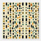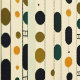 Patrón elegante y abstracto con líneas verticales con árboles geométricos, hojas y formas circulares en tonos naranja, verde y negro. Este diseño de inspiración natural crea una estética moderna y minimalista, ideal para los amantes de la decoración contemporánea y del arte que buscan un toque elegante y terrenal.