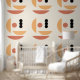 Este diseño presenta círculos geométricos contemporáneos y líneas horizontales en tonos marfil, y naranja amarillo sobre un fondo marrón oscuro. Es un estilo hipster ornamentado, elegante y a la vez divertido, perfecto para el diseñador de interiores artísticos, el artístico-moderno, el hipster a la moda, los amantes del retro vintage, el arte de la nueva deco o los motivos geométricos digitales abstractos. Está disponible en una amplia gama de modernos artículos de decoración casera, ideal para decorar un dormitorio principal o para niños, cocina, vivero, salón o habitación familiar, cueva de mujer, dormitorio universitario, condo, estudio o apartamento.