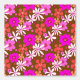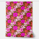 Floral illustration wallpaper design. Pink, orange and off-white, hand-drawn flowers appear diagonally in this pattern. Shown over a rich, dark chocolate brown background color. Perfect for giving a room a colorful, retro, vibe.