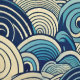 This unique seamless pattern combines retro and futuristic styles in an abstract depiction of waves. The design features a palette of deep navy, classic cream, and soft blues, creating a sense of both nostalgia and modern movement.