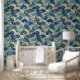 Papel Pintado Retro-Futuristic Abstract Wave - Navy & Cream