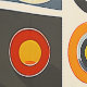 Esta obra de arte presenta un patrón vibrante y audaz de círculos concéntricos y cuadrados dispuestos en un formato de rejilla estructurada. El diseño presenta una paleta de colores retro con naranjas cálidos, marrones, amarillos y cremas, creando un ambiente nostálgico y moderno. Cada círculo está perfectamente centrado dentro de su cuadrado, con patrones repetitivos que crean una composición rítmica y equilibrada. El uso de colores fuertes y contrastantes y formas geométricas le da a la pieza un aspecto dinámico y visualmente atractivo, que recuerda al diseño moderno de mediados de siglo.