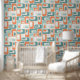 Papel Pintado Retro Mod Ovals Orange Mint Teal Aqua Blue