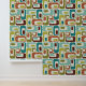 Papel Pintado Retro Mod Ovals Pillow Beige Aqua Verde Marrón