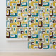 Papel Pintado Retro Mod Ovals Teal Blue Brown Mustard Yellow