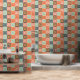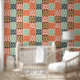 Papel Pintado Retro Resumen Floral Check Mid Century