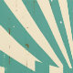 Esta obra de arte presenta un llamativo diseño de inspiración retro con audaces rayas radiantes en una paleta de colores verde azulado y crema. El patrón de arranque central se acentúa con líneas angulares y formas geométricas, creando un sentido de movimiento y energía. La textura desgastada y angustiada le da un toque vintage que recuerda a los viejos posters o a los carteles. Pequeñas estrellas y puntos esparcidos por todo el diseño realzan su estética nostálgica y dinámica, convirtiéndola en una pieza visualmente atractiva.