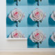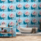 Papel Pintado Rosa mojado blanco sobre fondo azul turquesa