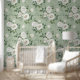 Color de agua Rosas blancas en una baja verde claro con fondo verde claro