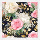 Acuarela elegante rosa y blanco con el aliento de los bebés delineado en oro en papel de fondo negro de medianoche.