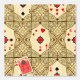 Sumérjase en el mundo opulento de los juegos de cartas clásicos con este intrincado patrón de cartas de estilo vintage. Con diseños de fibra ornamentados en ricos tonos dorados, salpicados con audaces símbolos de trajes de tarjetas rojas y negras sobre un cálido fondo crema. Este lujoso patrón combina el encanto de las antiguas cartas de juego con la elaborada decoración de estilo victoriano. Ideal para crear un ambiente sofisticado en salas de juegos, bares o cualquier espacio que desee un toque de nostalgia. Ideal para papel de pared de alta gama, impresiones de tela o superficies de mesa de juego personalizado que elevan el arte de jugar con cartas.